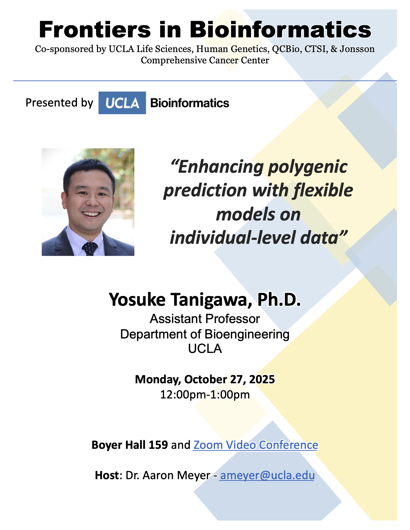 I am excited to present our recent and ongoing efforts on polygenic score modeling at UCLA’s Frontiers in Bioinformatics seminar.